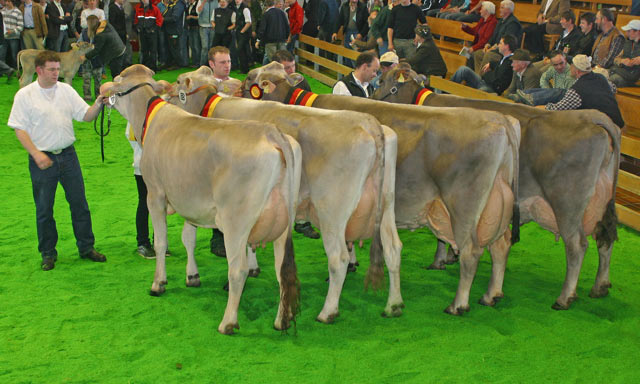 Im November starten auf dem GP Sargans drei Rinder, die in unserem Stall geboren sind, drei Vollschwester. Es handelt sich um drei Starbuck-Töchter aus Jetway Teddy, die unter anderem einen ersten und einen zweiten Rang machen. Das Siegertier läuft unter der Flagge Österreichs und ist im Besitz von Hans Haller, Tirol, dem wir viele tolle Rinder verkaufen durften. Drei Vollschwestern, dazu noch so tolle Platzierungen – das ist beim GP Sargans bis heute einzigartig.